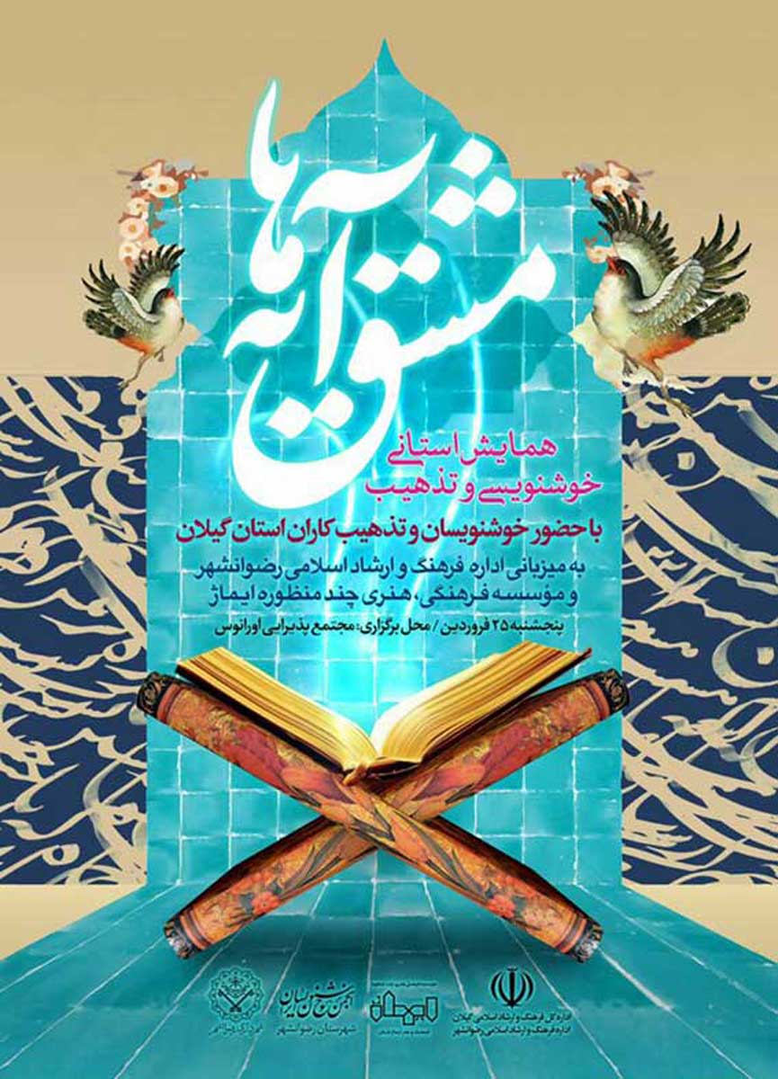 همایش استانی مشق آیه ها (مشق نور) برنامه ای به قدمت هجده سال که هر ساله ماه مبارک رمضان در شهرستان رشت برگزار میشد امسال با همت موسسه فرهنگی هنری ایماژ و همکاری اداره کل فرهنگ و ارشاد اسلامی استان گیلان در چهار شهرستان لاهیجان ٫ رضوانشهر ٫ بندرانزلی و سپس رشت برگزار شد.